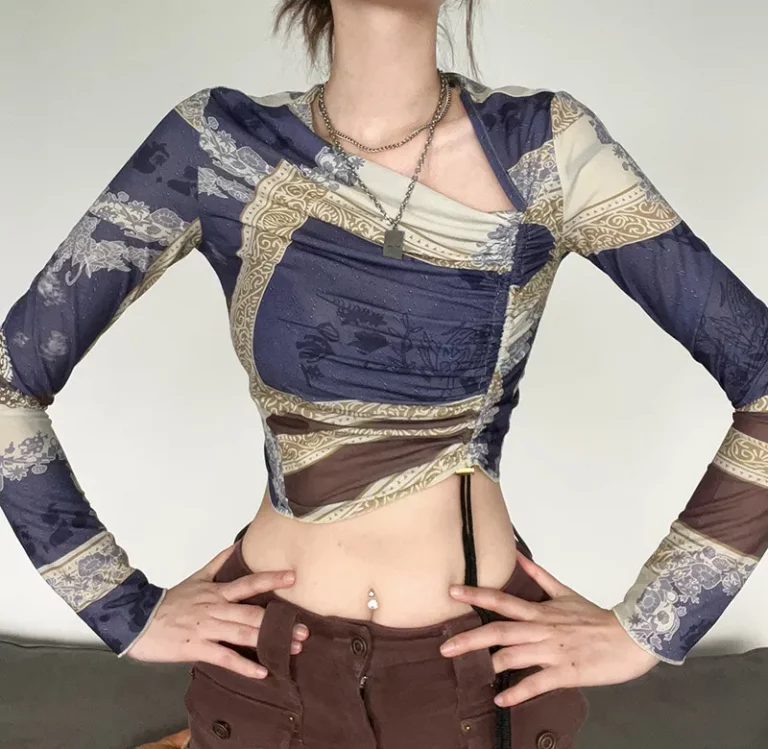 Abstract Long Sleeve Crop Top