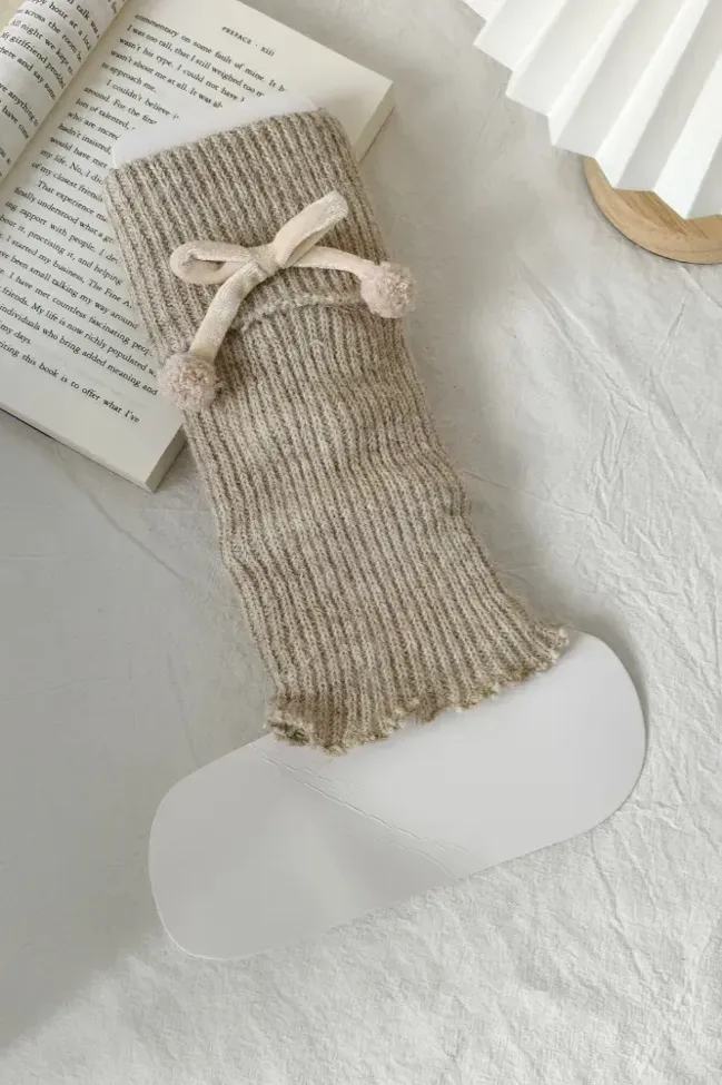 Beige Bow Leg Warmers