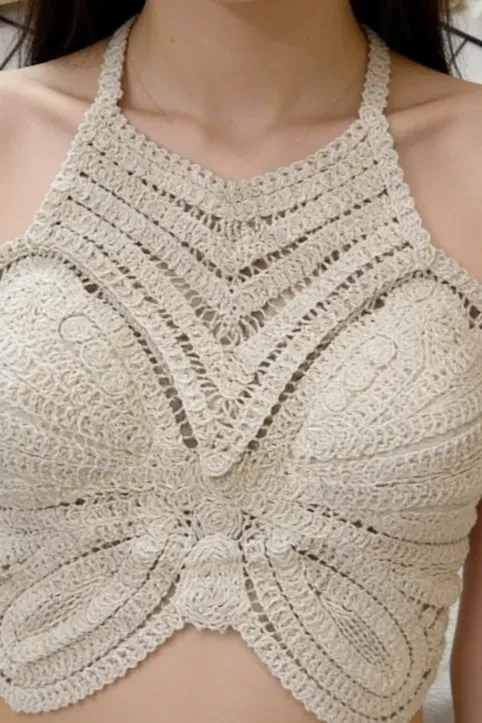 Beige Crochet Halter Crop Top
