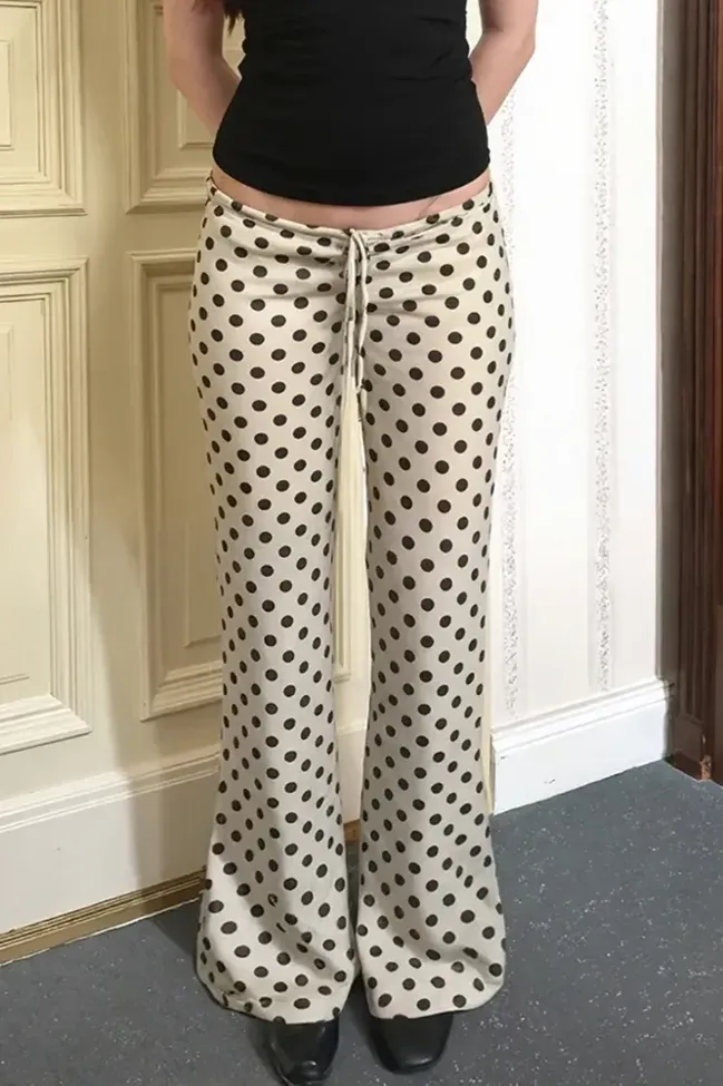 Beige Low Rise Polka Dot Bootcut Pants