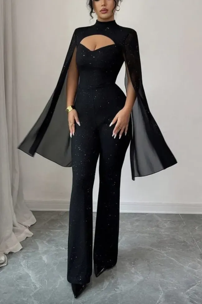 Black Cut Out Cape Sleeves Jumpsuit