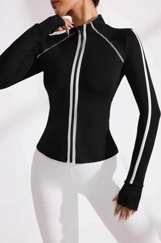 Black Fitted Zip Collar Sports Jacket
