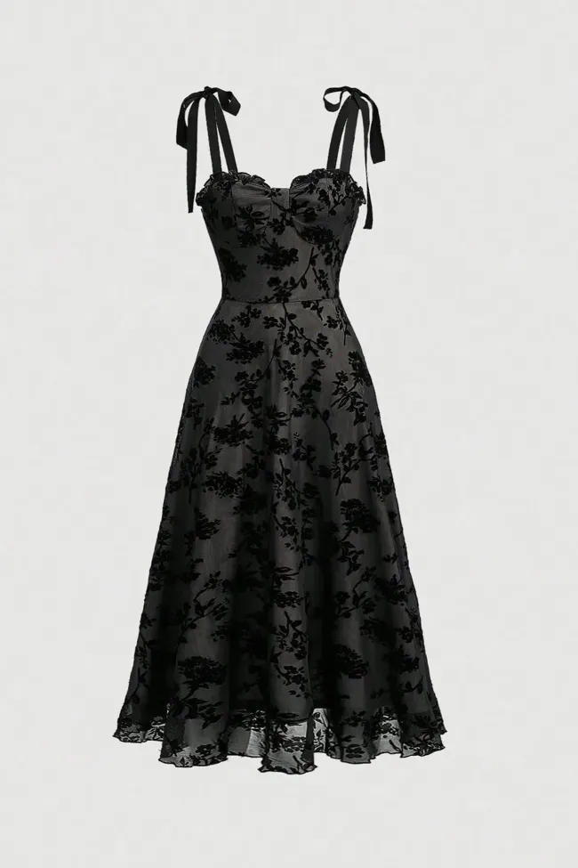 Black Floral Sweetheart Midi Dress