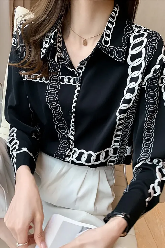 Black Geometric Print Buttoned Shirt