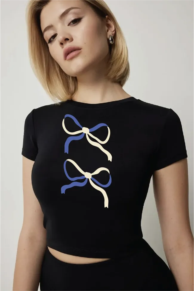 Black Graphic Crew Neck Tshirt