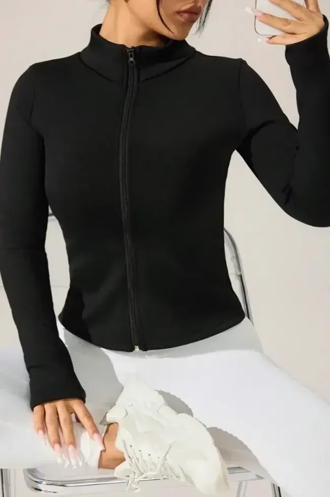 Black High Neck Fitted Sports Jacket