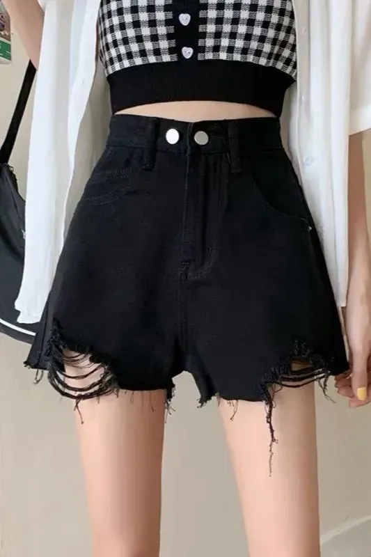 Black High Rise Ripped Denim Shorts