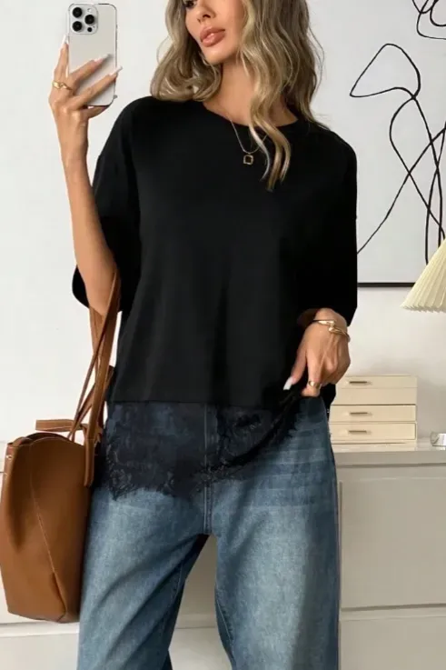 Black Lace-Insert Asymmetric Top