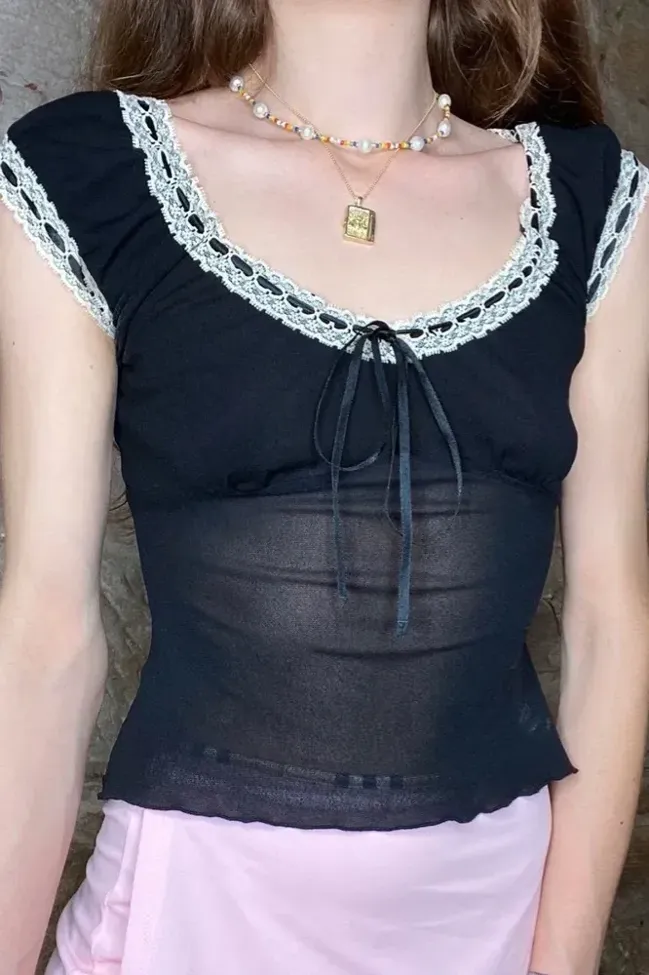 Black Lace-Insert Fitted Crop Top