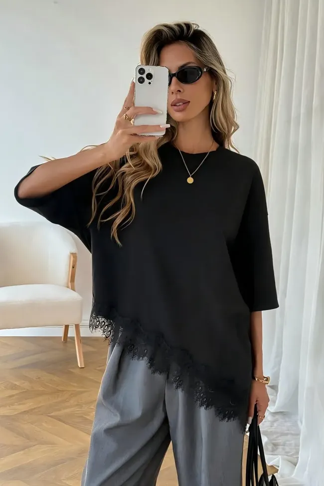 Black Lace Overlay Leopard T-Shirt