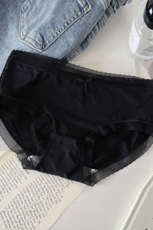 Black Mid-Rise Sheer Panties
