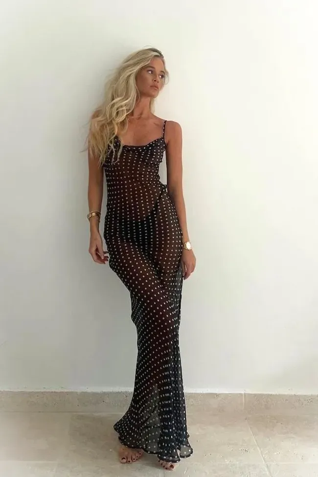 Black Polka Dot Maxi Dress