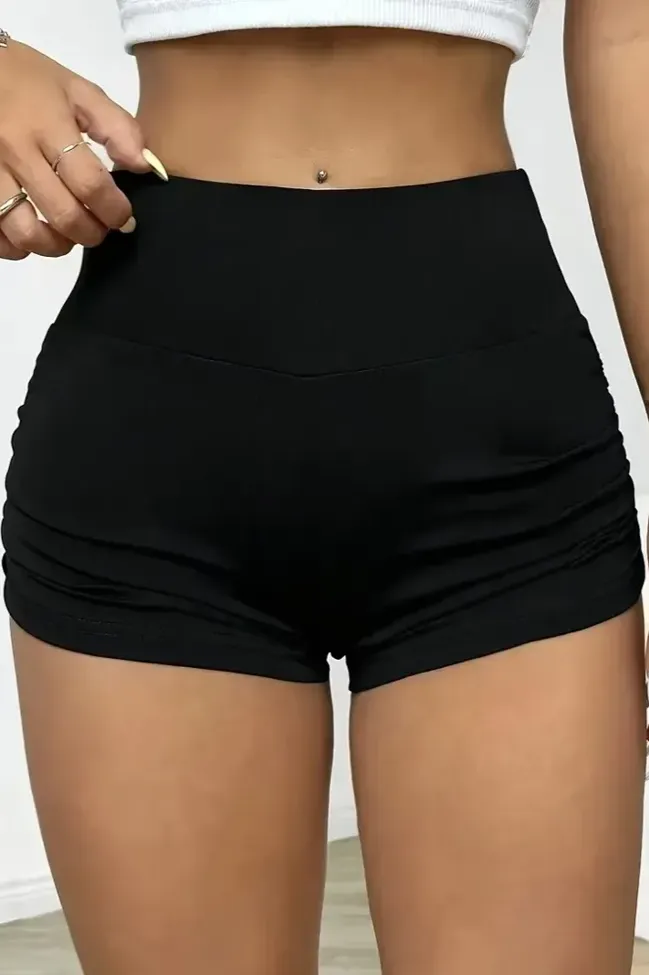Black Ruched Mid-Rise Shorts