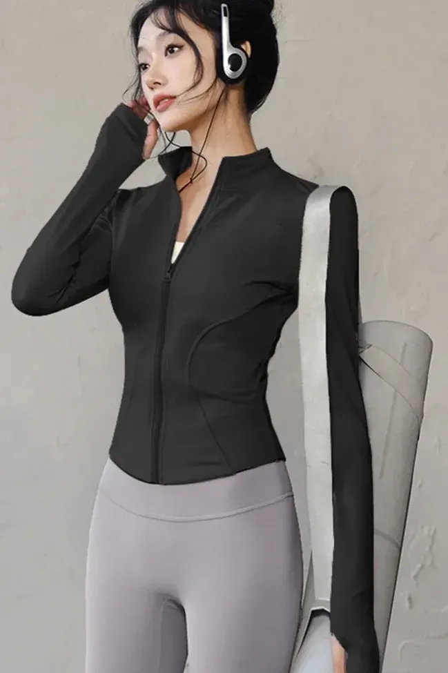 Black Solid Fitted Sports Jacket