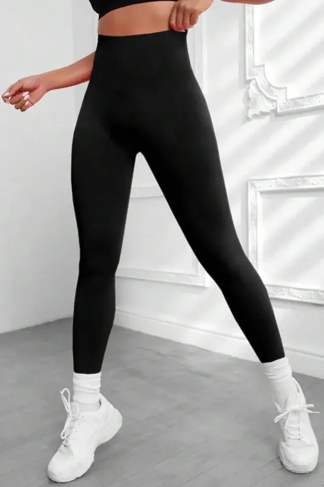 Black Solid High-Rise Leggings