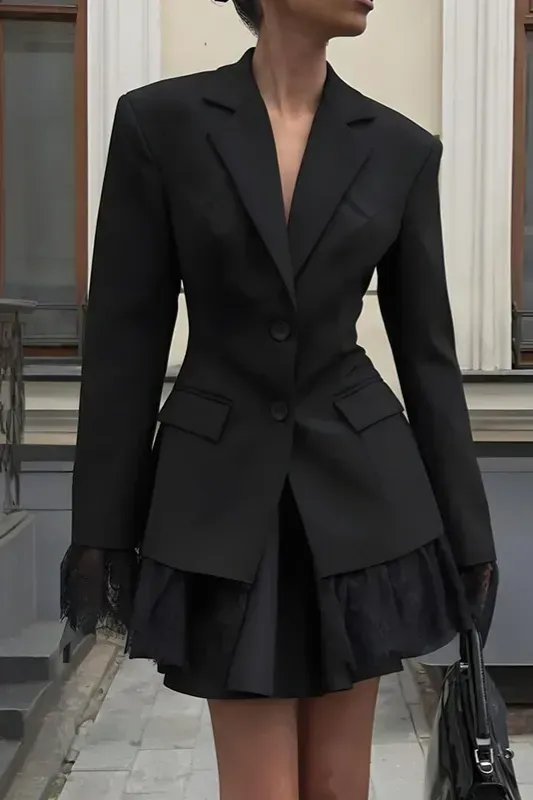 Black Solid Lace Blazer