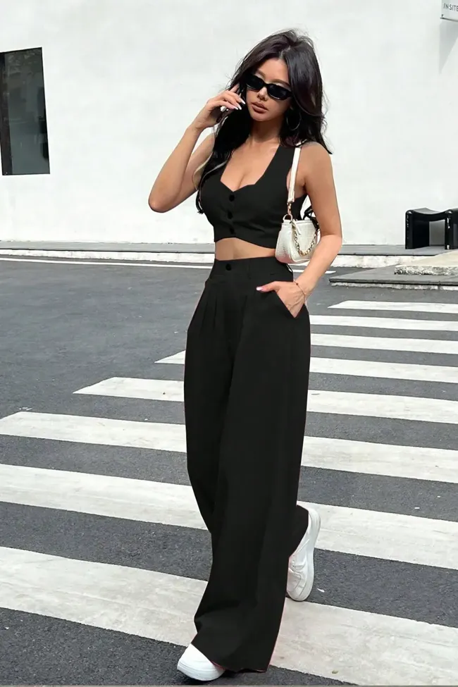 Black Solid Mid Rise Trousers