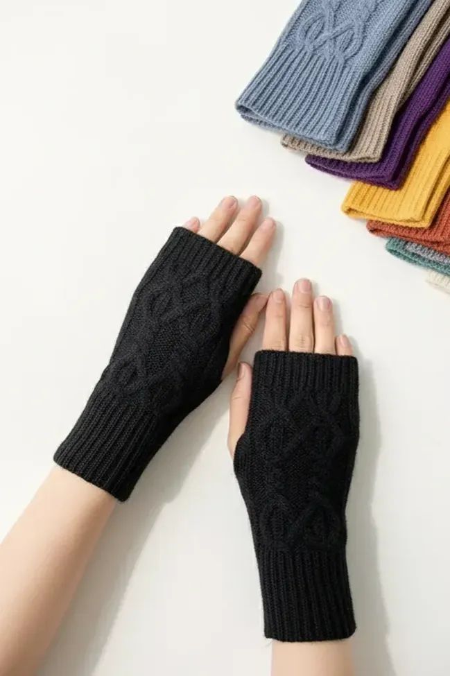 Black Solid Textured Thumbhole Gloves