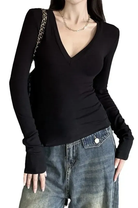 Black Solid V-Neck T-Shirt