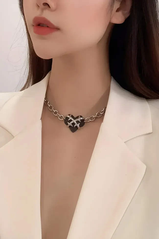 Black Statement Heart Pendant Necklace