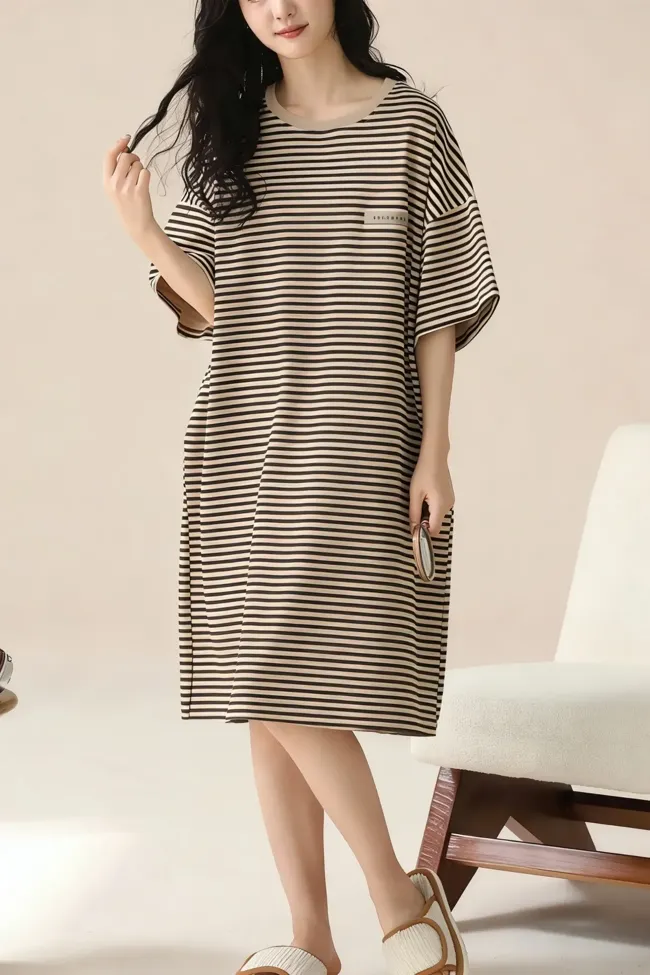 Black Striped Round Neck Midi Dress