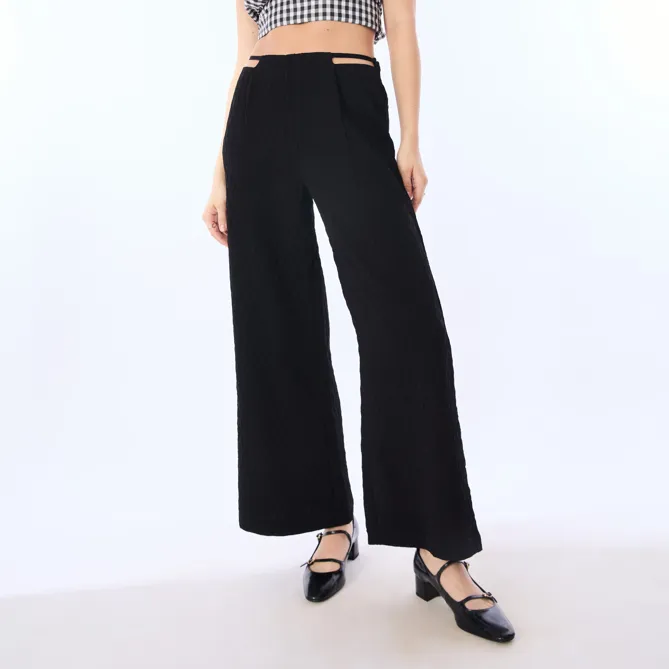 Black Textured Wide Leg Trousers
