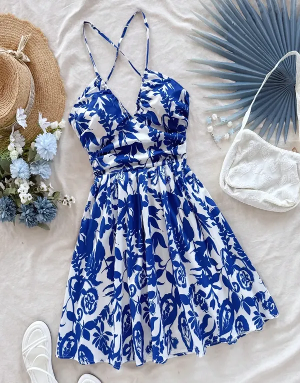 Blue Floral Printed Mini Dress