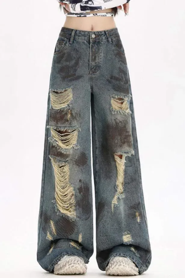 Blue High Rise Ripped Jeans