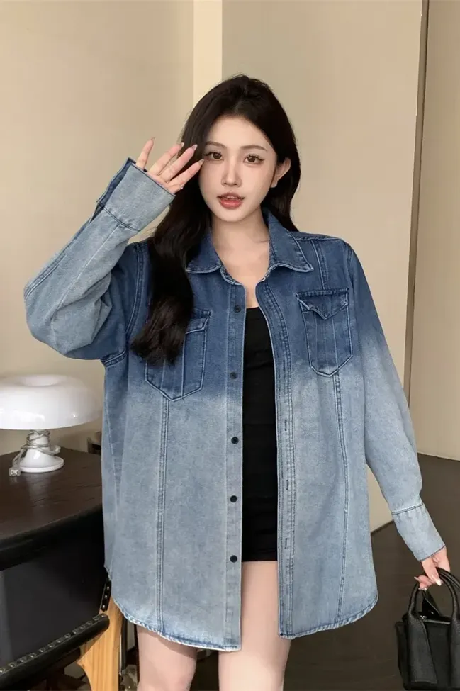 Blue Ombre Oversized Denim Jacket