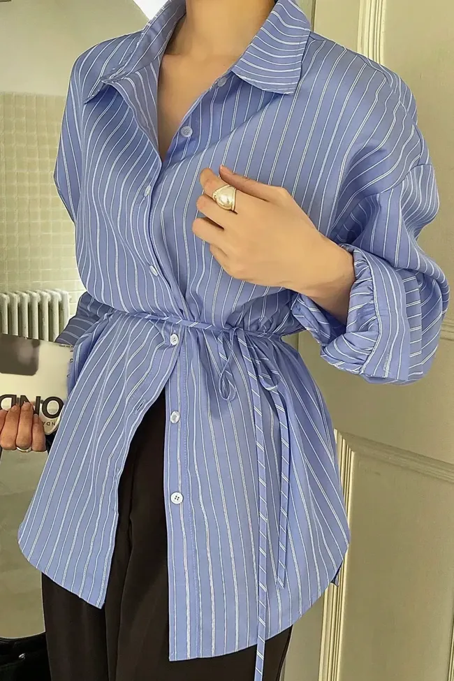 Blue Striped Button Down Tie-Up Shirt