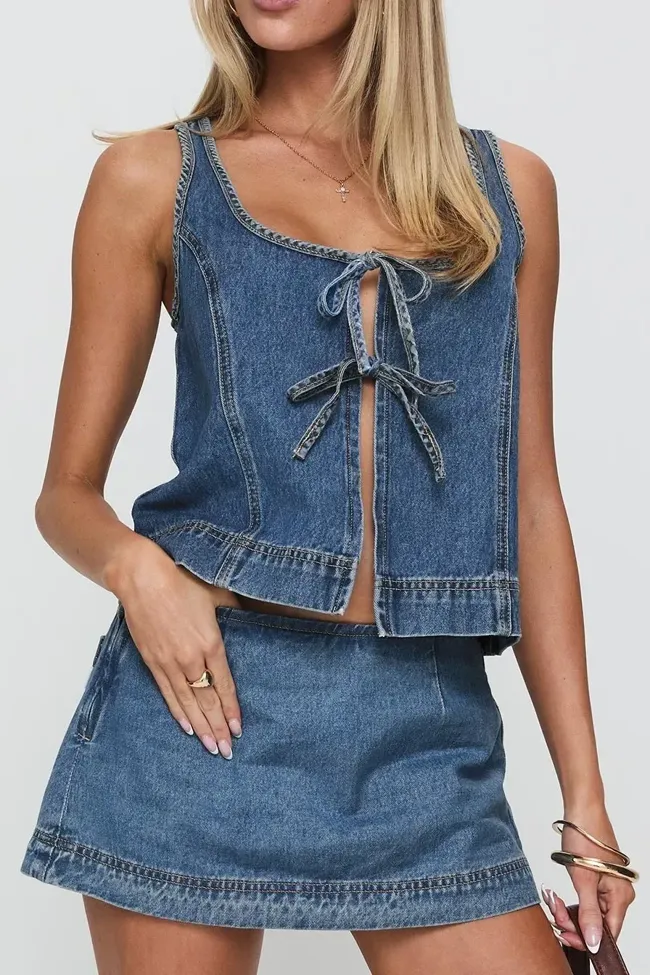 Blue Tie-Up Denim Skirt Co-Ord Set