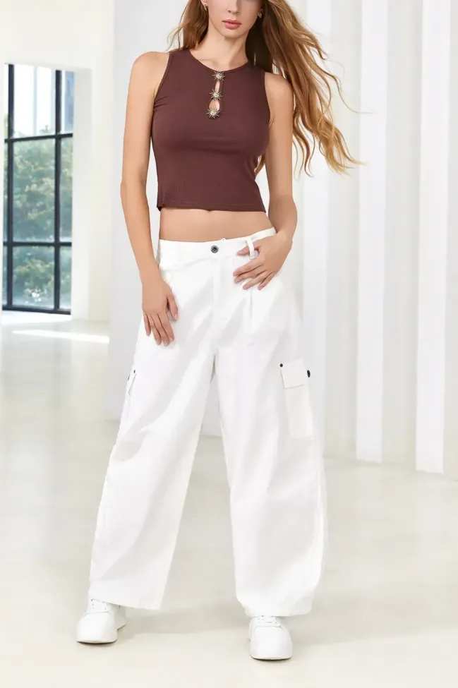 Brown Cut Out Crop Top