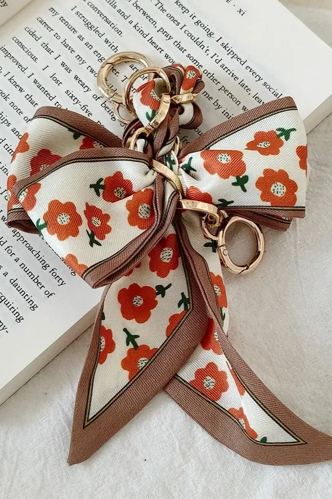 Brown Floral Bow Bag Charm