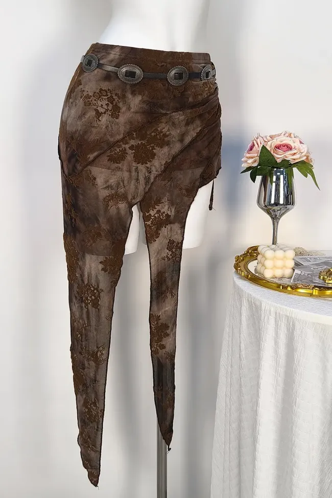 Brown Floral Draped Mini Skirt