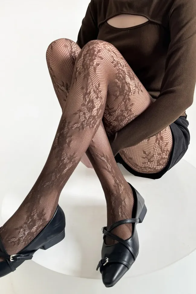 Brown Lace Floral Stockings