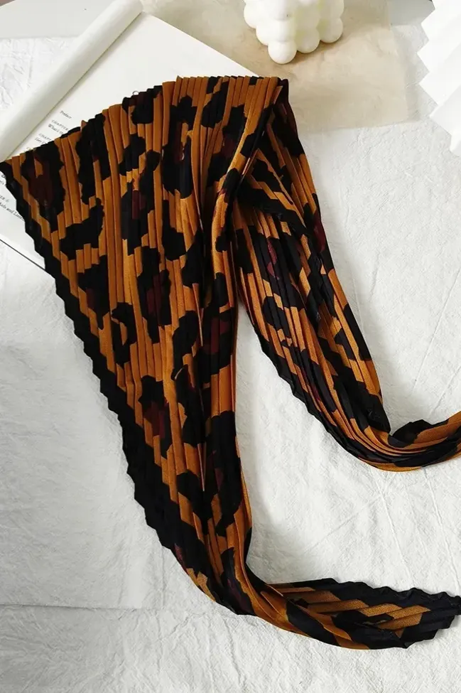 Brown Leopard Printed Pleated Scarf