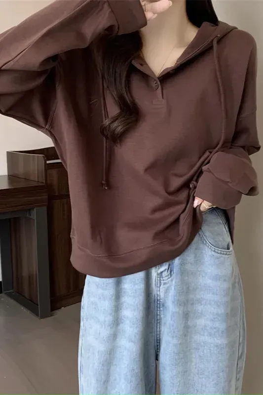 Brown Solid Hooded Sweatshirt