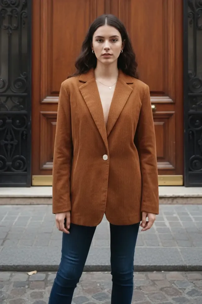 Brown Solid Lapel Collar Blazer