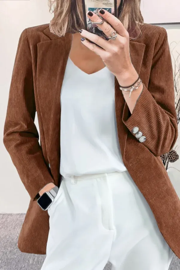 Brown Solid Lapel Collar Blazer