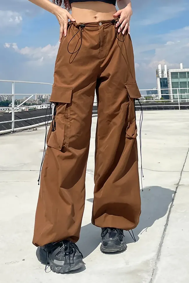 Brown Solid Mid Rise Cargo Pants
