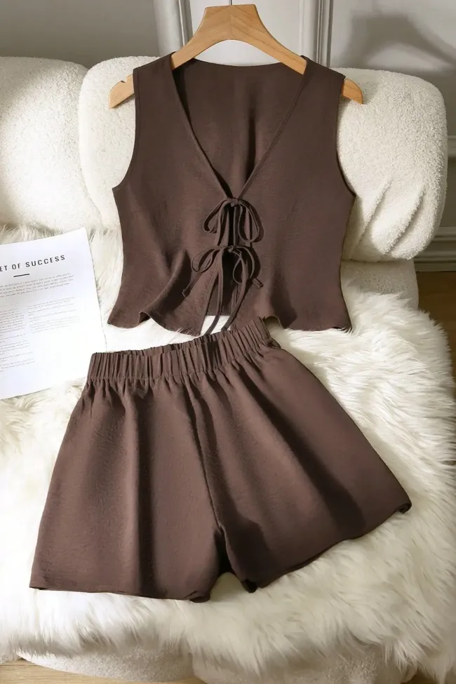 Brown Solid Tie-Up Co-Ord Set