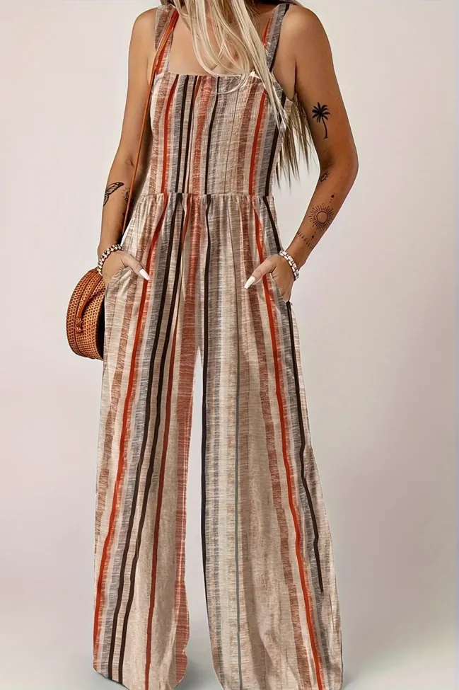 Brown Striped Square Neck Jumpsuit