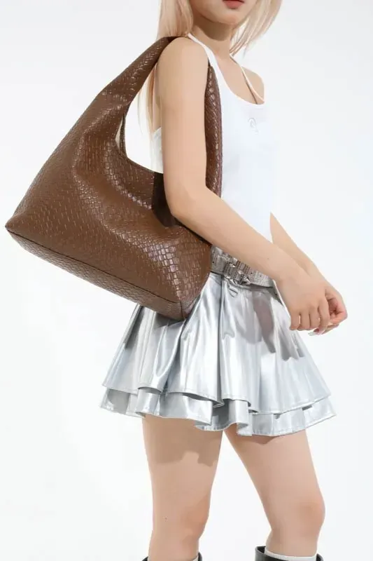 Brown Textured Hobo Bag