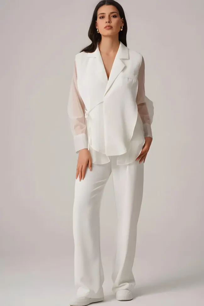 Chic Drape Wrap White Blazer