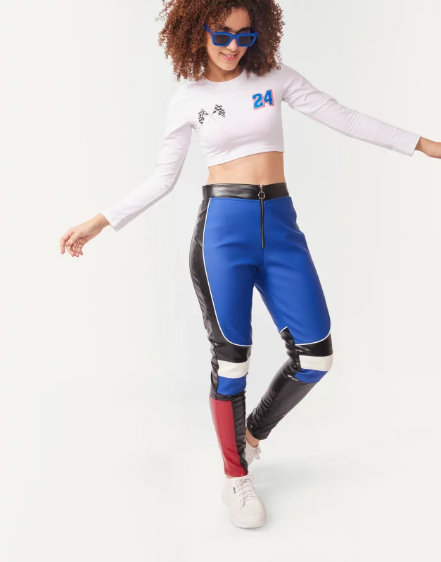 Color Blocked Faux Leather Biker Pants