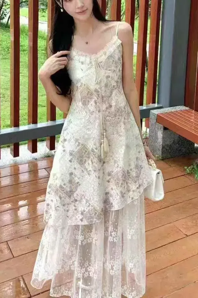 Cream Sweetheart Floral Tiered Maxi Dress