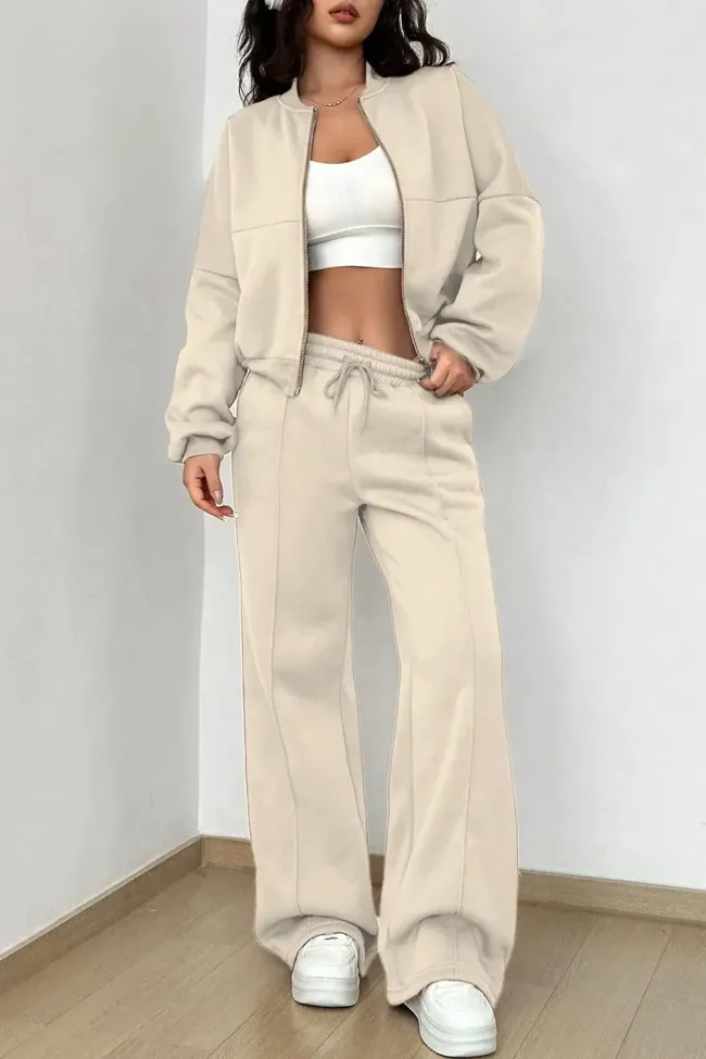 Cream Zip Collar Co-Ord Set