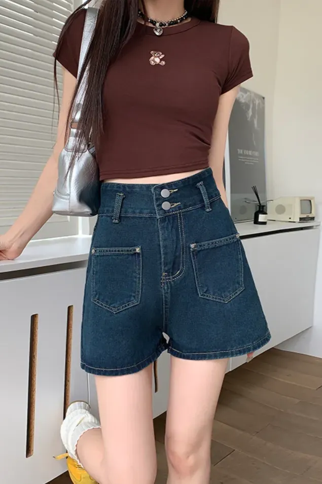 Dark Blue High Rise Denim Shorts