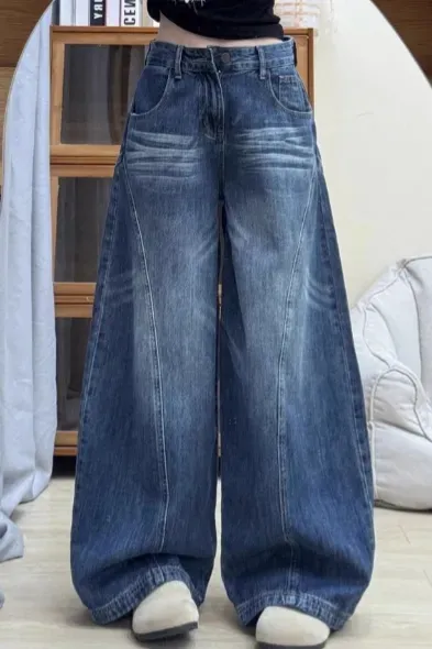 Dark Blue Mid Rise Wide Leg Jeans