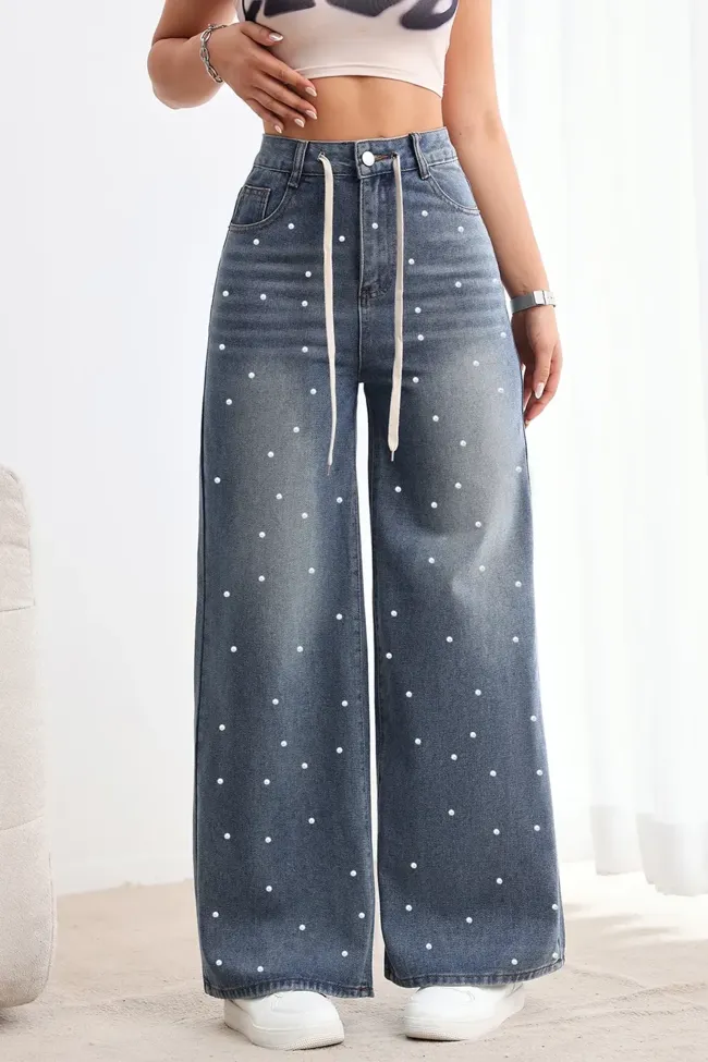 Dark Blue Polka Dot High Rise Jeans